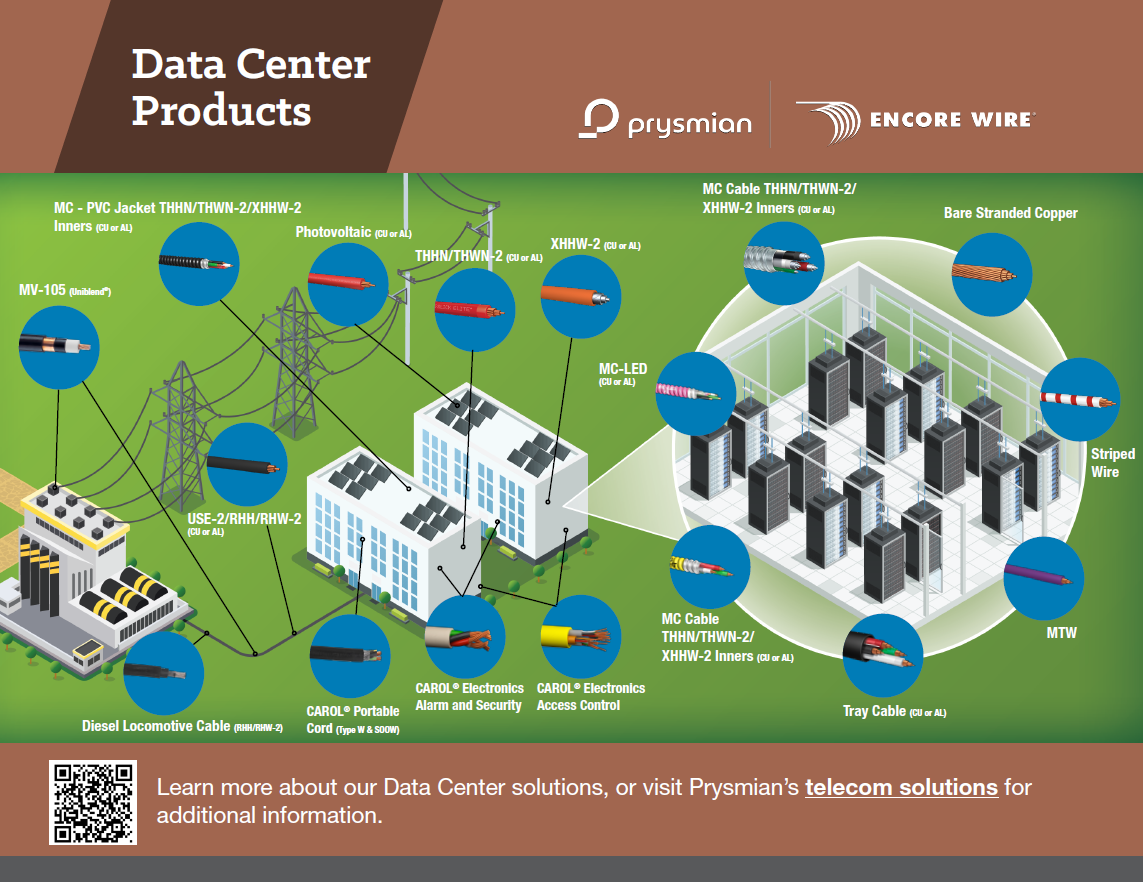 Power up with cables specifically designed for data centers. Encore Wire products are easy to install, flexible for routing around tight spaces and well insulated to handle the heat. Save time by purchasing pre-made cables, or let us design wiring to your exact specifications. For quality, reliability and speed of delivery, Encore Wire is your number one choice.